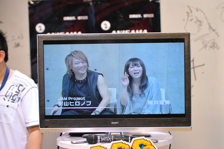 7月15日则是万众期待的ANISAMA IN SHANGHAI 2012第二批参演歌手发布的日子。在CCG会场的玻璃演播室中,面对众多的媒体和演播室玻璃墙外里三层外三层围着的热情粉丝们,本届ANISAMA的主催齐藤P先生首先播放了一段JAM PROJECT的视频。视频中影山浩宣先生和奥井雅美小姐向着屏幕前的中国歌迷们送出了最诚挚的问候,并约定了会在10月带给大家一场有史以来最精彩的演出。作为日本动漫界当红的歌唱组合,JAM PROJECT在过去的几十年间一直是“燃”的代名词,在中国也有着无数的忠实歌迷。今年JAM PROJECT不会在日本的ANISAMA登台,而选择了ANISAMA IN SHANGHAI作为自己演出的舞台,这实在是对中国粉丝和动漫迷最大的诚意,也将成为本届ANISAMA IN SHANGHAI最大的看点之一。