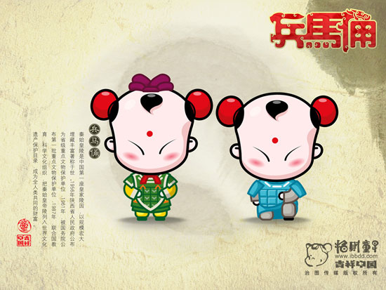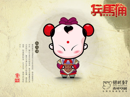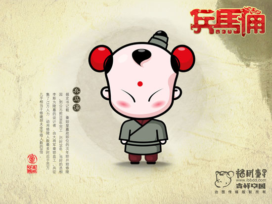 治图传媒坚持致力于原创动漫品牌的打造,对深挖中国传统文化做出了卓有成效的实践。继开创性的推出赢得巨大声誉的招财童子国粹京剧系列动漫作品后,前瞻性的结合世界第八奇迹兵马俑创作出全新的动漫作品!招财童子国粹经典兵马俑用现代流行的动漫手法Q版表现,栩栩如生的造型很好的揭示人物的精神世界,给人愉悦的视觉享受!开了中国动漫产业创作题材的先河,也必将在中国动漫史上写下浓墨重彩的一笔!