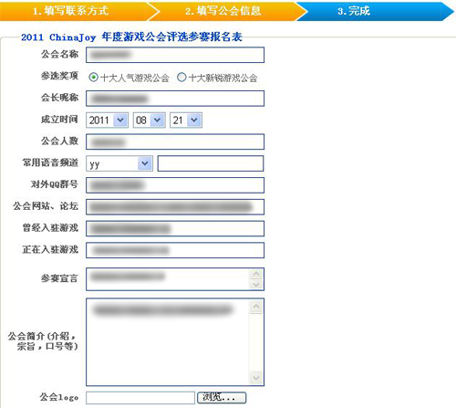 4.公会报名信息填写。请务必认真填写,便于官方对该公会信息的审核,确认参赛资格。