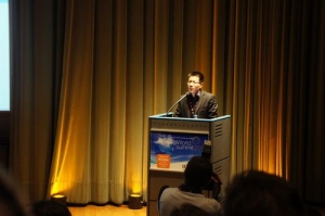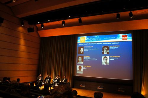 席间,协会秘书长明豪侠先生以深入浅出的形式和完整翔实的统计数据,就“中国游戏产业现状及未来发展前景”于电子游戏高峰论坛上进行了30分钟的现场发言,并与互动艺术与科学学院主席Joseph OLIN先生,Facebook的伙伴关系主管Julien CODORNIOU先生及Bigpoint的首席游戏官Philip REISBERGER先生等四人,就“社交网络是否将成为第二个电子游戏平台”的话题进行了1小时颇有见地的讨论,睿智的言语和诙谐的幽默引得现场超过250名观众频频爆发出热烈的掌声。