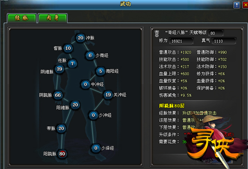 《寻侠》独创经脉系统,玩家可以在游戏中将自己全身的奇经神脉一一打通,像电影《功夫》中主人公一跃之间成为不世出的绝顶高手!