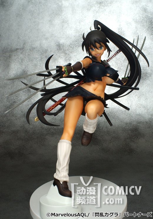霸气侧漏~~~由3DS爆乳动作游戏《闪乱神乐:少女们的真影》改编的漫画『闪乱神舞』年底又出新手办,六刃在手呈飞跃而起的动态姿势,背面的刀鞘也一应俱全,但紧裹的大胸只是浮云,卸下装备后的背影才是真正亮点!