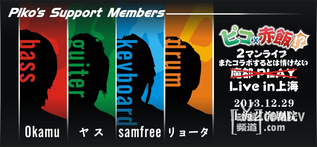 两位广为人知的日本niconico翻唱歌手ピコ(已出道)和赤饭,将于2013年12月29日(星期日)带上他们的乐队(键盘-samfree、吉他-ヤス、贝斯-okamu以及鼓-リョ?タ)在上海艺海剧院举行一场激情四射的演唱会。而本场演唱会的标题,是经由ピコ和赤?团队的多番深入研究最终确定为「赤?xピコ 2マンライブ またコラボするとは情けない Live in上海」(赤饭x piko 双人演唱会 又在一起真不好意思 live in上海)。在各位看来这标题是不是很熟悉呢?没错!这就是从今年6月27日他们“小别重逢”在nico上传的合作动画「しんでしまうとはなさけない!歌唱」中得来的标题。这个集双方想法孕育而成的标题已经透露出满满的诚意了!届时这两位两声类歌手以及他们的乐队会在舞台上会擦出怎样的火花呢?!