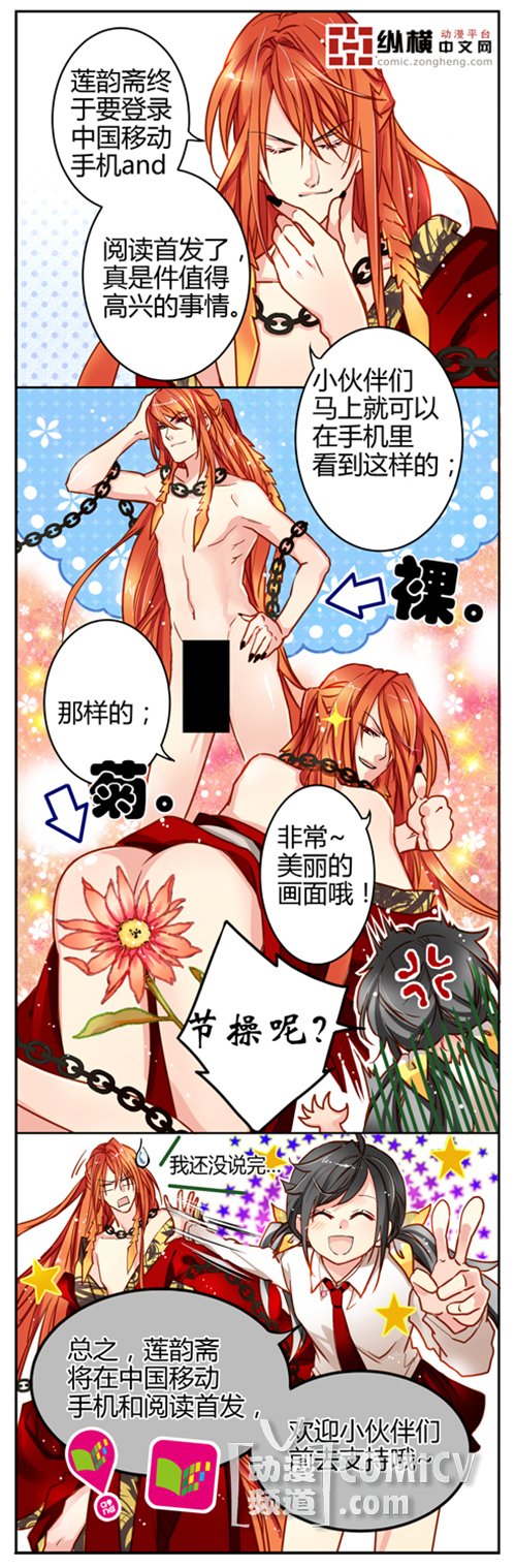 《莲韵斋》在中国移动手机和阅读首发(移动用户编辑短信“莲韵斋”发送到10658080,手机也能随时随地看《莲韵斋》)