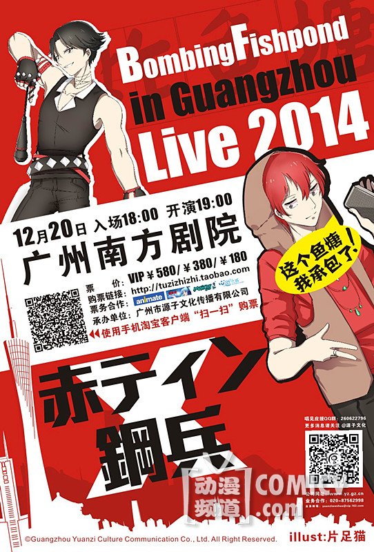 日本实力唱见赤ティン(akatin)和钢兵的“Bombing Fishpond Live 2014 in GuangZhou” 将于2014年12月20日 19:00在广州南方剧院开演!让人热血沸腾的宣传视频新鲜出炉,