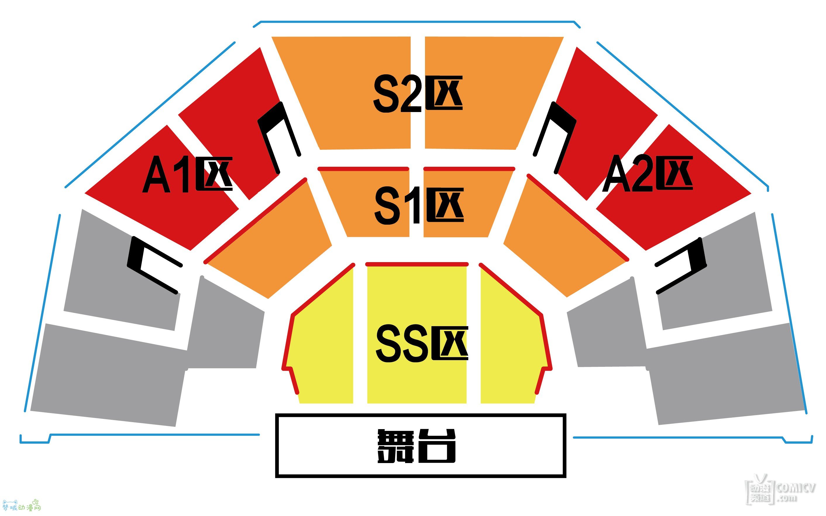 演唱会现场座位共分五个区域,分别为SS区、S1区和S2区、A1区和A2区,全部采用坐席对号入座。SS区演唱会门票售价1380元/张,S1、S2区演唱会门票售价880元/张,A1、A2区演唱会门票售价580元/张。儿童与成人统一票价,一经售出概不退换。