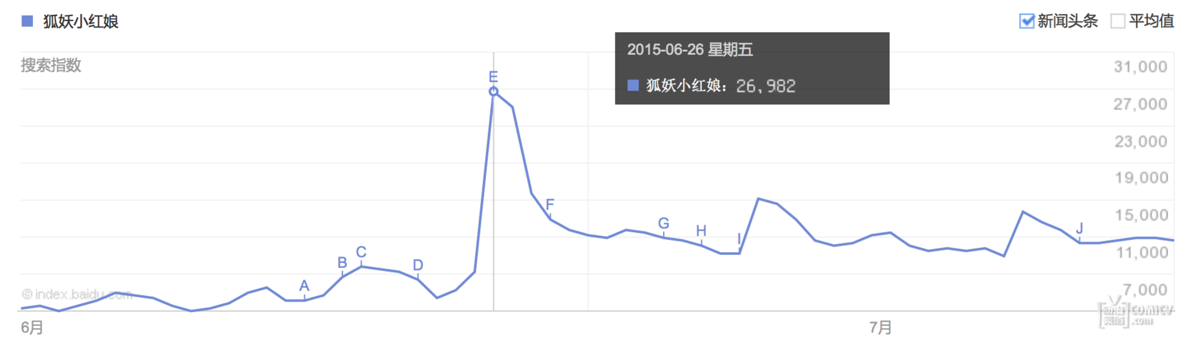 “自古人妖生死恋,千载孽缘一线牵。”以此句开始的《狐妖小红娘》,讲述的是以红娘为职业的狐妖涂山苏苏在为前世恋人东方月初牵红线过程当中发生的一系列有趣、神秘的故事。6月26日,《狐妖小红娘》第一集全网播出,一上线就以精良的画面品质、中国风十足的人设形象受到大量网友追捧。百度搜索指数更是在当天就达到了近27000的高峰。