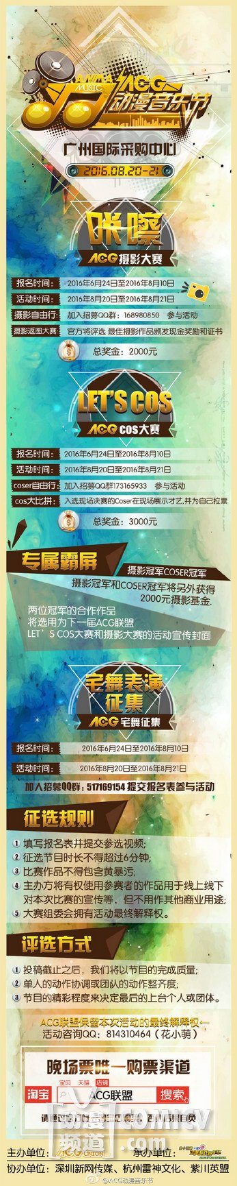 活动当天将有摄影大赛、cos大赛以及宅舞比赛,总奖金高达万元,冠军更有机会登上下一届ACG联盟摄影和cos大赛的活动宣传封面哦。