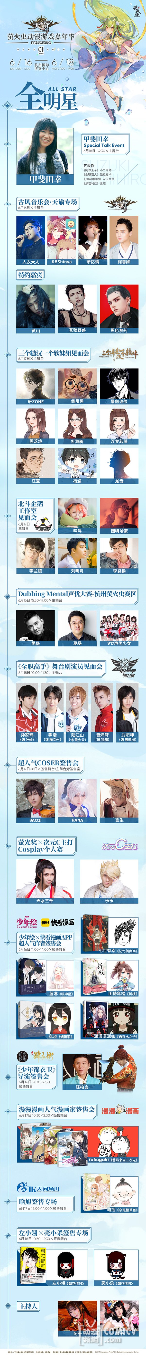 作为萤火虫漫展首届杭州站,这次为小伙伴们带来了超级豪华的嘉宾阵容!