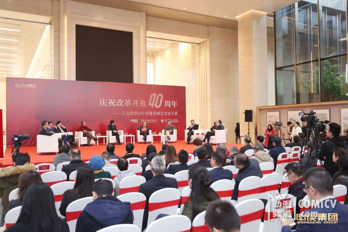 仪式结束后,在舞狮的引领下,众嘉宾移步中庚环球创意中心,参加庆祝改革开放40周年——文化经济论坛暨董希源艺术馆开幕。