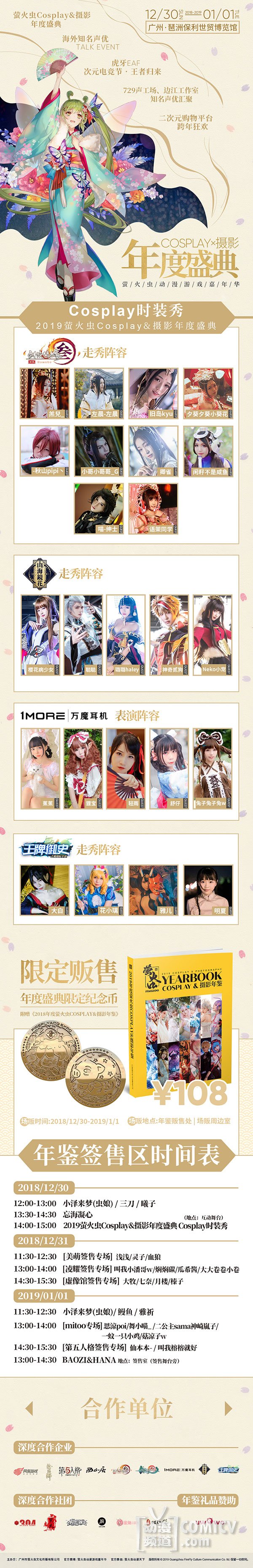 2019萤火虫Cosplay&摄影年度盛典即将火热拉开帷幕!不仅已公开了限定虫娘纪念金/银币和超厚实的《2018年度萤火虫Cosplay&摄影年鉴》的各种丰富内容,届时虫娘还将携手网易阴阳师手游、剑网3、山海镜花、王牌御史、1MORE万魔耳机等豪华知名企业/IP为大家奉上一场Cosplay时装秀的视觉盛宴!更多惊喜敬请期待~
