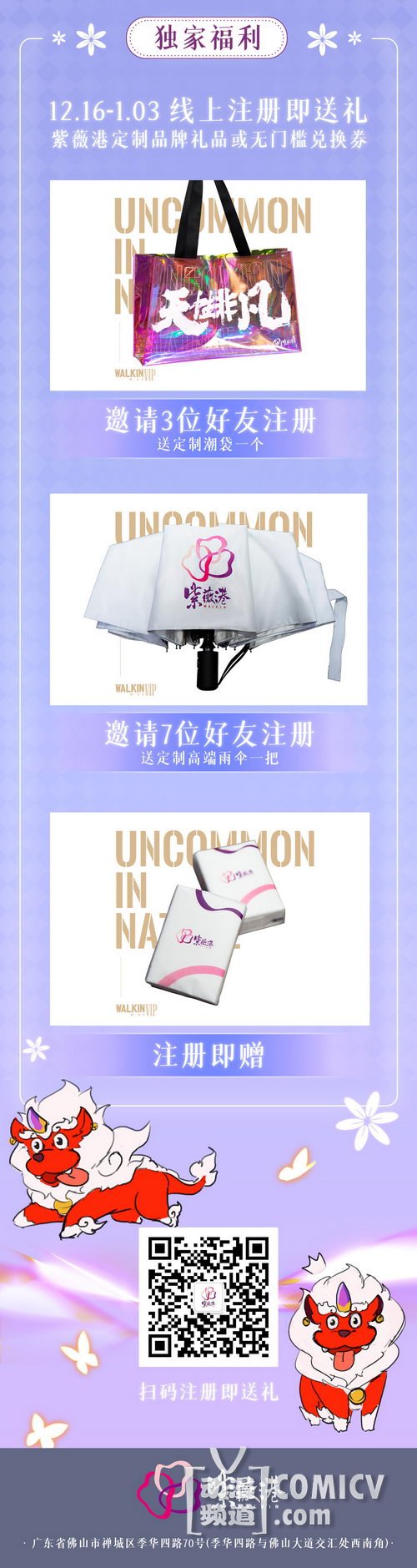 漫无“紫”境COSPLAY巡游紫薇港IP紫薇仙子结合cos盛大亮相,携手各路动漫形象及动漫痛车,打造漫无紫境coser巡游,coser的年度盛会、宅舞快闪,也为紫薇港制造了新的惊喜。
